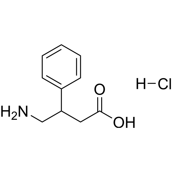 Phenibut (β-Phenyl-GABA) hydrochloride is an orally active GABA-B agonist. Phenibut hydrochloride acts as a GABA-mimetic, primarily at GABAB?receptors. Phenibut hydrochloride has anxiolytic and nootropic (cognition enhancing) effects.