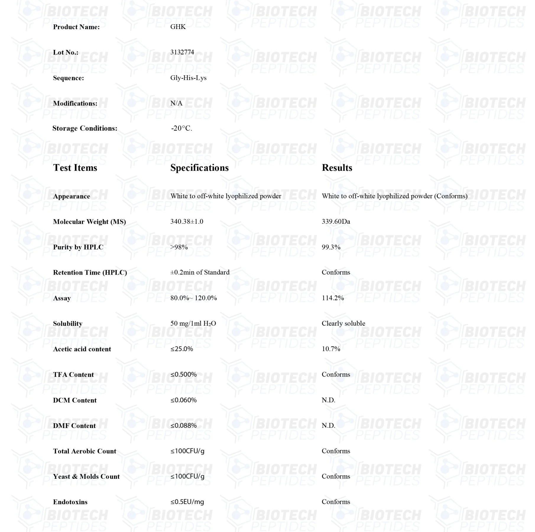 GHK basic peptides are Synthesized and Lyophilized in the USA.